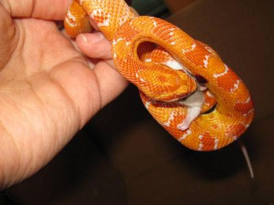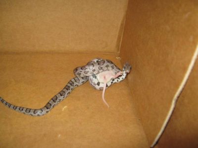 Souris läßt sich nicht stören beim fressen"Die Maus hat sich aus der Schlange einen Gürtel gemacht."